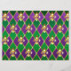 joias, fundo em Mardi Gras de losango roxo e verde, lírios de ouro decorados.