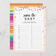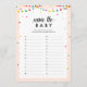 Jogo de chá de fraldas do tema fiesta com luzes coloridas de cordas e confete. Nomeie o bebê - localize um nome para cada letra do alfabeto. O primeiro que ganha o máximo no tempo atribuído ganha!
