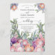 A gorgeous arrangement of tropical flowers will make your wedding day really stand out! Stunning, watercolor flowers from the Southern Hemisphere add an exotic flavor to your day! Beautiful King Protea in various shades of pinks, purples and soft greens. Romantic and extraordinary! All of your pertinent information can be personalized on the front with the back saved for any message you would like to be put there. This would be perfect stationery for your tropical themed wedding.