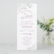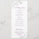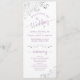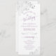 Este belo programa de casamento apresenta um elegante design com púrpura empoeirada ou texto lavanda sobre fundo branco e caramujos e redemoinhos de folha de cinza prateada e redemoinhos nos cantos. Os títulos são escritos em caligrafia de rico, e há espaço para seus detalhes de cerimônia e festa de casamento, assim como um obrigado curto para seus convidados. É uma maneira maravilhosa de dar as boas-vindas aos seus amigos e familiares à sua celebração de casamento.