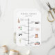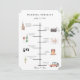Os elementos do dia do casamento de cor d'água colorida e vítrea, programa da linha do tempo. O cartão apresenta igreja, câmera, garrafa com vidro, ajuste de placa, notas de música, bolo, buquê e carro retrô. O verso do cartão apresenta um arranjo botânico seco de frondes de palma, antracum, rosas e orquídeas. O estilo e a cor da fonte do texto podem ser personalizados.
