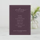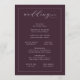 This elegant wedding program features a sophisticated maroon background with an understated yet refined script typography that adds a touch of timeless charm. The layout is clean and structured, guiding guests through the ceremony's key moments in a graceful manner. Perfect for couples seeking a classic and polished aesthetic, this design exudes warmth and formality, making it ideal for a memorable celebration. Its customizable text areas allow personalization to fit your special day seamlessly.