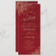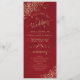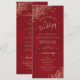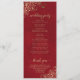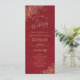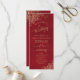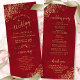 Este belo programa de casamento apresenta uma elegante design com texto dourado sobre fundo vermelho de fogo e caramujos de folha fina de ouro de legado e espirais nos cantos. Os títulos são escritos em caligrafia de rico, e há espaço para seus detalhes de cerimônia e festa de casamento, assim como um obrigado curto para seus convidados. É uma maneira maravilhosa de dar as boas-vindas aos seus amigos e familiares à sua celebração de casamento.