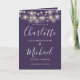 Programa de casamento de assinatura roxa com lindas luzes de corda e tipografia moderna e elegante. Este programa de casamento elegante pode ser personalizado com as informações do seu dia especial de casamento. Projetado por Thisisnotme©