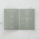 Programa de casamento de letra cursiva verde salvia com luzes de corda bonitas e tipografia moderna e elegante. Este programa de casamento elegante pode ser personalizado com as informações do seu dia especial de casamento. Criado por Thisisnotme©