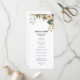 Programas bonito, elegantes e modernos de cerimônia de casamento para sua ocasião especial! O marfim e a magnólia violeta florescem com borda de folhagem de folha de cor d'água em folhas verdes moles e amarelas com bagas roxas miniatura e molduras de uva no topo do seu programa de cerimônia de casamento. O verso lista os membros da sua festa de casamento com campos de texto facilmente editáveis. Use os campos modelo para adicionar informações sobre sua cerimônia e noivado e clique em "Personalizar" para reposicionar elementos, se necessário. A design combina com o resto dos Magnolia Blossoms | Coleção Floral De Ivory Violet.