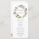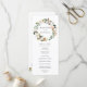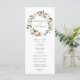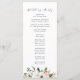 Elegante programa de casamento floral com os seus nomes rodeados por uma coroa de magnólias brancas de aquarela, rosas cor-de-rosa pinceladas, flores de algodão e folhas verdes. Personalize os programas de casamento florais adicionando a data e o local do casamento, a ordem dos eventos e a festa de casamento no verso. Projetado para coordenar com nossa coleção de casamento Watercolor Magnolias.