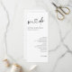 Este moderno programa de casamento apresenta uma design minimalista e um moderno roteiro de escrita manual com letra de mão. Ele é configurado com o texto alinhado à direita e à esquerda, mas você pode clicar em "personalizar" para torná-lo centralizado. As costas têm a sua festa noiva e informação familiar com um obrigado especial que você tem no fundo.