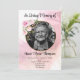 Simples e elegante no programa de adorável funeral de mármore cor-de-rosa e dourado, e obituário com flores rosas cor-de-rosa e informação editável, carregue sua imagem de entes queridos para o cobrir.