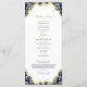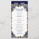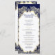 Este cartão do programa de casamento apresenta um design minimalista em azul-marinho clássico e ouro. A frente destaca os nomes do casal como quadro do ouro, colocado contra fundo marinho profundo, dando um toque formal e sofisticado. A página de trás apresenta os detalhes completos do casamento em um layout moderno e limpo, acentuado com realces sutis de ouro. O emparelhamento de eternos do marinho azul e do ouro ximerso cria um design elegante e distinto, perfeito para cerimônias formais e artigos de papelaria.