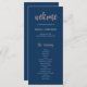 LEAH ・ Este programa de cerimônias de casamento azul e rosa é perfeito para casamentos românticos e elegantes. A paixão é trazida pela letra fofa escrita manuscrita na textura "faux" da folha de ouro rosa, enquanto o fundo do marinho na moda combinado com o texto da cópia branca adiciona um toque de preciosidade. Esta coleção coordena-se bem com celebrações glamourosas, especialmente para eventos de interior, outono ou inverno.