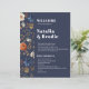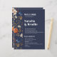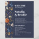 Uma adorável borda de aquarela pintada com uma fonte moderna e um tema de humor escuro. Uma design francesa escura e melodia. Edite facilmente a modelo para se adequar ao seu evento de casamento. Programa marinho Azul Terracotta Bohemian Wedding.