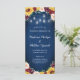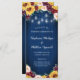 Estes programas de casamento apresentam girassóis e flores borboletas em fundo azul marinho de madeira com luzes de jarro de pedras. Personalize-os com o seu texto. Estes programas de casamento fazem parte de uma coleção que inclui uma variedade de papelaria de casamento que você pode personalizar para o seu casamento. Visite nossa loja para ver o intervalo de cheios.