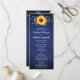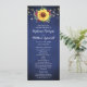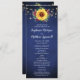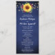 Esses programas de casamento apresentam girassóis de cor d'água, rosas de burlagem, folhagem e linhas de luz sobre fundo azul marinho. A frente do cartão tem a cerimônia e a parte traseira do cartão lista a festa noiva. Estes programas de casamento fazem parte de uma coleção que inclui um cheio de papelaria de casamento que você pode personalizar para o seu casamento. Visite nossa loja para ver o intervalo de cheios.