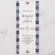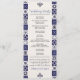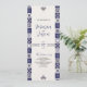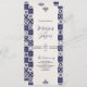 Este design do Programa de Casamento Branco Azul, Marinho Maiolica do México, apresenta um layout vertical alto com um fundo creme suave formado por azulejos simétricos com padrão azul de marinho ao longo de ambos os lados. Os azulejos, inspirados nos designs tradicionais Talavera ou Majolica, apresentam uma variedade de motivos ornamentados, incluindo elementos florais, espirais e geométricos, criando uma estética rica, tradicional, mas eterno. São colocados acentos decorativos mínimos no topo e no fundo do espaço central, deixando a área média alongada aberta e ideal para detalhes de texto ou evento.