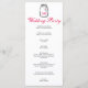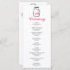 Um programa de casamento bonito com um jarro de mason com iniciais e um coração cor-de-rosa na etiqueta. Preto, branco e rosa. Três fontes: um padrão aflitivo, um roteiro aflitivo e um sans serif. Limpo e romântico!