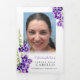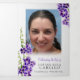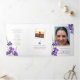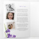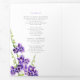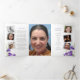 Programa funerário de serviço com dupla face floral roxo, programa de funeral de arte floral de aquarela floral. Substitua o texto de exemplo e nove fotos com marcadores de posição por suas próprias fotografias especiais, ordem de serviço memorial, obituário, leitura ou poema, e reconhecimentos, e outros detalhes de informações pessoais, conforme necessário. A aquarela original Skyflower Duranta também conhecida como Ouro Dew Drop, Pigeon Berry ou pintura brasileira do Sky Flower e design por Sarah Trett para www.mylittleeden.com (as fotos são apenas imagens marcantes para você substituí-las por suas próprias fotos especiais).