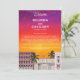A modern yet retro style design featuring Miami Beach Charleston Rainbow Row buildings with tropical palm trees. A colorful Miami themed wedding design featuring watercolor illustrations of the sunset, Rainbow Row Charleston architecture and tropical palm trees. This contemporary modern Miami beach wedding design is ideal for all seasons. An elegant Miami Florida style design featuring watercolor colorful buildings, pink flamingo and tropical palm illustrations. A retro Miami beach themed wedding Itinerary card design with modern elegant elements. Matching wedding invitations and other stationery items are also available.