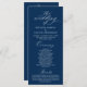 Modern Classy Elegant Wedding Ceremony Program card. It is designed with scroll accent that can be personalised with custom/ personalised text for your bridal party, ceremony details, memorial notes and thank you message, in navy blue.