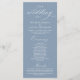 Modern Classy Elegant Wedding Ceremony Program card. It is designed with scroll accent that can be personalised with custom/ personalised text for your bridal party, ceremony details, memorial notes and thank you message, in dusty blue.