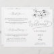Um ramo de magnólias, desenhado à mão num lápis de grafite negra, decora este elegante, simples, clássico e moderno, programa de casamento dobrável. Apresenta caligrafia moderna e elegante com amplos florescimentos. Luxuoso, mas simples, clássico, mas chique, moderno, mas eterno. Uma escolha encantadora para um primavera ou casamento de verão com magnólias no buquê de noiva ou como sotaque.