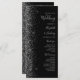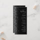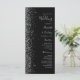 A borda esquerda deste elegante programa de casamento moderno apresenta um design brilhante falso prateado. O texto personalizável combina a escrita manual de cinzas prateadas, fontes copperplate e itálico em um fundo preto.