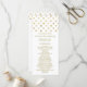 Estes modelos são perfeitos para qualquer casal planejando uma festa de casamento de moda. O design apresenta um fundo de bolinhas na moda em branco e ouro com uma redação dourada correspondente. O design simples pode ser personalizado para se adequar ao seu evento especial e será a ordem de serviço perfeita para qualquer partido moderno, incluindo chás de panela, noivados, chás de casamento, festas de aniversário e muito, muito mais.