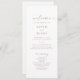 Este moderno programa de casamento de guião rosa é perfeito para um casamento minimalista. O simples design cor-de-rosa-rosa-rosa-claro apresenta uma tipografia exclusiva de letras industriais com estilo boho moderno. Personalizável em qualquer cor. Mantenha o design mínimo e elegante, como está, ou personalize-o adicionando seus próprios gráficos e trabalhos de arte. Inclua o nome da noiva e do noivo, a data e o local do casamento, a mensagem do obrigado, a ordem do serviço, a festa noiva e um memorial "em memória amorosa" opcional.