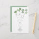 Programa Moderno de Casamento Eucalyptus. Tamanho de 5,5" x 8,5" a um preço orçamentário, em uma elegante estoque LINEN de 110 lb - para um sentimento de luxo pelo valor do excelente, isso é perfeito para programas, convites e menus, etc. Este alternativo de tamanho de orçamento também está disponível em outras opções de papel. O estoque do cartão SEMI-GLOSS de 110 lb tem aproximadamente a mesma espessura do cartão postal, portanto também funciona bem para convites. O papel FELT de 100 lbs é colorido por buff, NÃO branco, então adiciona um toque rústico. O estoque de papel MATTE de 80 lb é branco brilhante, para impressão nítida, excelente para seus menus e programas, enquanto o papel SATIN de 80 lb é fino e leve, ideal para gabinetes. OBSERVE QUE OS ENVELOPES OPCIONAIS SÃO UM POUCO MAIORES EM TAMANHO A 6,75" x 9" aprox. O cabeçalho principal está em um script de conjunto de na moda e o resto do texto que você pode personalizar facilmente. Um galho elegante de folhas de eucalipto atravessa o topo. Você pode alterar as cores do texto e do plano de fundo se quiser combinar o tema da cor do casamento através da opção Personalizar Mais, assim como de outras opções que você precisar. Se precisar de assistência para a edição deste design, por favor, envie-me uma mensagem.