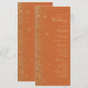 A borda esquerda deste elegante programa de casamento moderno apresenta um design de brilho dourado. O texto personalizável combina manuscrito pálido de cor dourada, fontes copperplate e itálico em um fundo laranja queimado.