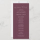 Um programa de casamento elegante com um moderno roteiro de caligrafia branca com um fundo roxo para criar um design perfeito para casamentos de todos os estilos e estações. Personalize a frente do programa de casamento moderno com seus nomes, data e local do casamento, e ordem da cerimônia. O simples programa de casamento roxo reverte para exibir uma lista de sua festa de casamento. A design foi criada para coordenar com a nossa coleção de casamento da Elegância Moderna.