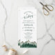 Este programa de casamento é rústico e estranho enquanto ainda é na moda e bonito. Ele apresenta uma paisagem aquosa de picos robustos de montanha com pinheiros no primeiro plano. Os títulos são escritos em caligrafia verde de guião rico, e há espaço para os detalhes da sua cerimônia e festa de casamento, assim como um obrigado curto para os seus convidados. É uma maneira maravilhosa de dar as boas-vindas aos seus amigos e familiares à sua celebração de casamento.