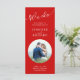 Este programa de casamento na moda tem um adorável, simples design vermelho e branco com um roteiro moderno dizendo "Nós temos" e a foto do casal, todos em um fundo vermelho. O dorso é branco com um design moderno minimalista e duas cerejas vermelhas bonito. Os textos e a foto são personalizáveis, substituam-nos pela sua! Você pode encontrar produtos correspondentes na nossa Coleção de Casamento de Cereja.