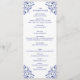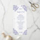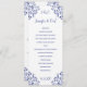 Deixem seus convidados seguirem com sua cerimônia de casamento em estilo com este belo programa de casamento entre vintagas pretas. Este design está definido em azul real, mas você pode mudá-lo para qualquer cor que quiser apenas mudando a cor de fundo. COMO ALTERAR A COR DO DESIGN: Escolha "PERSONALIZAR", "PERSONALIZAR" OU "EDITAR" e escolha uma nova "Cor de fundo".