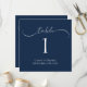 Elegante Marinho Moderno Número da Mesa Azul para criar uma divertida configuração de mesa moderna para um casamento clássico. Personalize-o na frente e atrás.