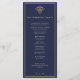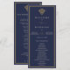 Elegant old money navy blue wedding program with classic serif typography and refined gold accents. Editable in the Zazzle editor.