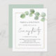 Um valor para o alternativo do ORÇAMENTO em tamanho menor de 4,5 x 5,6" de semirbrilho de 110 lbs, que é de espessura semelhante a um cartão postal (no entanto, não é adequado para uso como cartão postal). POR FAVOR, OBSERVE QUE HÁ UM convite por folha ORÇAMENTO Eucalyptus Wedding Night Convite de festas. Um estilo manuscrito para o Partido da Noite e o resto do texto que você pode personalizar facilmente. Um galho elegante de verde-aquarela e uma dica de folhas de ouro eucalipto está no topo. Uma borda de linha dourada rodeia o texto.