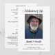 Programa de funeral clássico e elegante com um fundo branco clássico que pode ser alterado para qualquer cor, fotos, detalhes do funeral, ordem de serviço e uma nota de agradecimento personalizada no verso.
