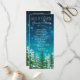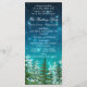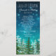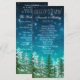 Programa de casamento com ordem de cerimônia com árvores de abeto rústicas em um belo fundo estrelado de céu noturno. Você pode adicionar o texto de sua escolha na frente e no verso no estilo de fonte que preferir.