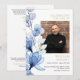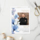 Um elegante programa de memorial de funeral personalizado com foto e flores azuis. Criado por Thisisnotme©