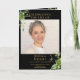 Um elegante programa de funeral personalizado com 3 fotos em aquarela e flores verdes dobrado. Projetado por Thisisnotme©