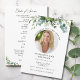 Personalize este programa simples e elegante com o nome, foto e mensagem de seu ente querido falecido. Honre e celebre a vida de seu ente querido com este modelo moderno de programa de funeral floral de eucalipto. Fácil de personalizar texto e foto. Nossas sinceras condolências e orações estão com você durante este momento muito difícil.