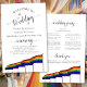 Estes programas de casamento são elegantes e saborosos, enquanto ainda são favoráveis ao orçamento. O design apresenta uma fila de bandeiras orgulho gay, fazer-o perfeito para qualquer cerimônia LGBTQ. A tipografia apresenta uma caligrafia antiga em preto, e há espaço para detalhes sobre a cerimônia, a festa de casamento, e um obrigado curto.