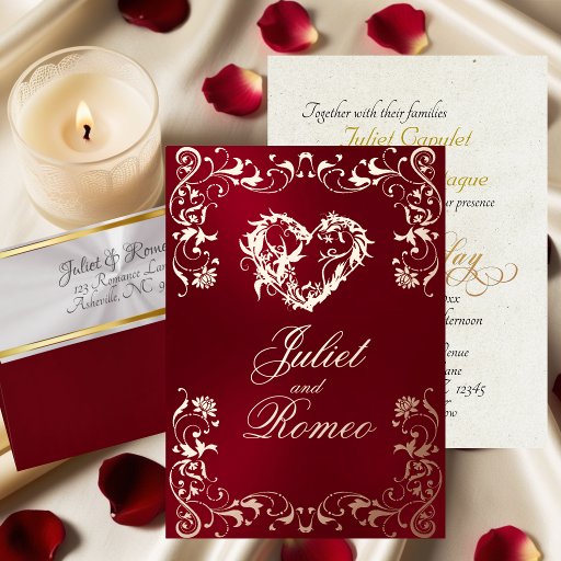 The Ornate Border & Heart Program features the bride & groom's first initials in a heart monogram frame. Wedding ceremony details & thank you on the front with wedding party members on the back. Designed to coordinate with the "Ornate Frame & Heart" Wedding Collection. To change details, click «Personalize». To move the text or change the text size, font, or color click «Click to customize further»