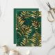 Padrão contínuo de ouro, joias, ramos de samambaia brilhantes e folhas em fundo verde, florestal e texturizado. Samambaia dourada.