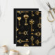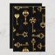Padrão perfeito de chaves antigas, douradas e silhuetas em fundo preto.