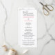 Bem-vindo é escrito em um roteiro elegante de cinza escura. Nomes de noiva e de noiva em cor-de-rosa rosa pastel contra fundo branco nítido. Cartões do Programa de Casamento projetados para seis mestres-mães e nomes de padrinhos de casamento. Se você tiver uma festa de casamento menor, simplesmente exclua as bridesmaids e linhas de padrinhos de casamento extras não necessárias e remova o espaçamento extra entre títulos clicando no botão deletar para mover a linha para cima para manter o espaçamento de uniformidade. Designs originais por TamiraZDesign. ©