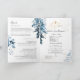 PixDezines Watercolor Blue Foliage Program Baptism com um roteiro de caligrafia de luxo e uma cruz em ouro falso. Todos os elementos são editáveis, copiam e colam. Copyright © 2019 PixDezines™. Todos os direitos reservados.