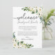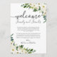 Use nossos cartões de boas-vindas do hotel de flores brancas e verdes para ajudar a receber seus convidados fora da cidade e informá-los sobre seu itinerário de casamento. . Use a ferramenta "Personalizar esta modelo" de Zazzle para inserir as informações da sua cerimônia de casamento. Se você precisar alterar o posicionamento das caixas de texto, a cor ou o tamanho da fonte, basta clicar no botão "Clique para personalizar mais" para alterar essas coisas. Certifique-se de verificar nossa grande seleção de itens coordenadores navegando na coleção de Casamento Floral Branco Moderno!