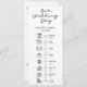 Seus hóspedes vão adorar ler todos os detalhes do seu casamento sobre esses lindos Programas de Cronologia de Casamentos! Ele apresenta o topo e o centro do Dia do Casamento em uma bela fonte escrita à mão e você pode facilmente editar a linha do ícone para acomodar a agenda do dia do casamento. Este programa plano 4 x 9,25 é perfeito se o seu casamento é numa ilha ou na praia. É simples, modesto e minimalista e as fontes são modernas e fáceis de ler. Faça-o tão único quanto você!